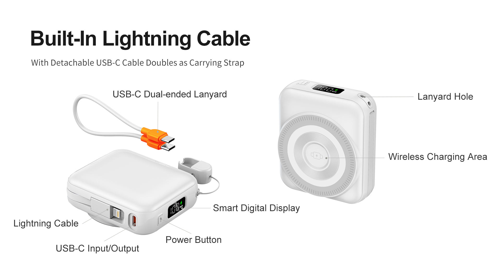 ◆ Unique Detachable USB-C Cable design can be used as a portable lanyard